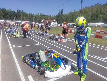 Am vergangenen Wochenende startete die neue Rennserie "German Karting Series" mit dem ersten Lauf auf dem traditionsreichen Erftlandring in Kerpen. In der neu geschaffenen X30 Senior Pro-Series erwarteten die Fahrer anspruchsvolle Bedingungen: Während der Samstag mit Nebel und Temperaturen um den Gefrierpunkt begann, zeigte sich am Sonntag strahlender Sonnenschein und veränderte die Streckenverhältnisse grundlegend. Bereits im Samstagtstraining zeigte sich Moritz Fischer von Beginn an in Topform. Im ersten freien Training am Sonntag fuhr er mit einem hauchdünnen Rückstand von nur 0,05 Sekunden auf Platz 2. Im zweiten Training nutzten einige Konkurrenten die Option neuer Reifen, während Moritz weiterhin auf gebrauchten Slicks unterwegs war. Trotz dieses Nachteils setzte er ein starkes Zeichen, indem er die beste Zeit auf gebrauchten Reifen fuhr und sich damit im Feld auf Platz 5 einreihte. Qualifying: Pech mit Überrundungen im morgendlichen Qualifying wollte Moritz Fischer dann an seine starke Trainingsleistung anknüpfen. In seiner Schnelle lief er jedoch auf zwei langsamere Wettbewerber auf. Dies machte seine Bestzeit zunichte und eine bessere Platzierung, so musste sich Moritz Fischer mit seiner zweitbesten Zeit und dadurch Startplatz 5 für das erste Prefinale am Nachmittag arangieren. Prefinale: Von Platz 5 ins Prefinale gestartet, erwischte Moritz Fischer eine hervorragende Startphase und kämpfte sich direkt bis auf Rang 2 nach vorne. Doch die sich verändernden Gripverhältnisse in der zweiten Rennhälfte hatten einen negativen Einfluss auf sein Sportgerät. Nach intensiven Positionsduellen fiel er am Ende auf Platz 5 zurück – dennoch eine solide Ausgangsposition für das Finale. Finale: Im finalen Lauf am Nachmittag startete Moritz Fischer erneut von Platz 5 und zeigte wiederholt seinen Kampfgeist. Er schob sich auf Platz 2 nach vorne, wurde jedoch in der ersten Kurve in eine Kollision verwickelt und unsanft aus dem Rennen um die Spitzenposition katapultiert. Mit beschädigtem Kart fand er sich nun am Ende des Feldes wieder. Doch anstatt aufzugeben, startete Moritz Fischer eine beeindruckende Aufholjagd und kämpfte sich bis auf Rang 6 nach vorne. Trotz der unglücklichen Kollision zeigte Moritz Fischer eine starke Performance und unterstrich sein Potenzial in der neuen Rennserie. Auch wenn die Ambitionen für den Saisonauftakt damit begraben wurden, bleibt die Vorfreude auf die kommenden Rennen bestehen – denn mit dieser Leistung ist in den nächsten Läufen definitiv mit ihm zu rechnen!