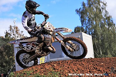 Für mich ging es am Wochenende zu der DM nach Teutschenthal. Ich freute mich sehr auf die anspruchsvolle Strecke. Das Wetter spielte super mit und die Strecke war von der Crew hervorragend vorbereitet. Alles erledigt am Samstag und dann ging es los zum Track Walk, ein paar Linien anschauen und auch die Stellen, wo es schwer werden kann. Am Sonntagmorgen ging es dann für mich ins freie Training, ich fühlte mich gut und sicher auf der Strecke. Ich konnte einige schnelle Zeiten fahren und mich mit der Strecke vertraut machen. Ich landete nach dem Training auf dem 18. Platz. Ich war sehr zufrieden, aber weiß, dass ich noch viel mehr kann. Weiter geht es ins Zeittraining. Vorweg habe ich mich mental vorbereitet und mich warmgemacht. Die Strecke war sehr anspruchsvoll und es waren schon einige tiefe Rillen vorhanden. Die Zeit war abgelaufen und ich konnte mir den 16. Startplatz in der DM Open sichern. Der erste Wertungslauf verlief einwandfrei. Ich habe mich so unglaublich gut auf der Strecke und auf meinem Motorrad gefühlt. Der Start verlief ebenfalls gut - ich war im vorderen Mittelfeld dabei. Ich hatte extrem gute Kämpfe mit den anderen Fahrern. Am Ende der 30+2 konnte ich auf Platz 13 ins Ziel kommen. Ich bin mehr als zufrieden mit dem Ergebnis. Weiter ging es mit dem zweiten Wertungslauf. Der Start war soweit okay - die Strecke war schon ziemlich kaputt und kantig. Ich konnte mich lange auf Platz 13 halten, habe dann aber leider einige Plätze verloren und beendete den zweiten Lauf auf Platz 15. Mit dem kompletten Wochenende bin ich sehr zufrieden. ich konnte meinen Speed fahren und vieles dazulernen. Ich freue mich auf die letzte Runde der ADAC Mx Masters in Holzgerlingen. See you there.