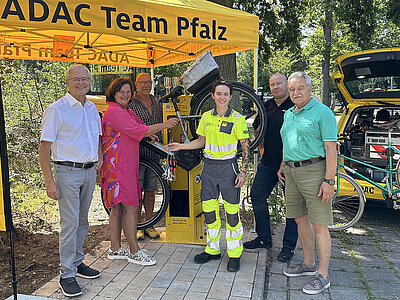 Service für Radfahrende - Der ADAC Pfalz weihte die ADAC Radservice-Station am Schifferstadter Waldfestplatz gemeinsam mit Bürgermeistern Ilona Volk…